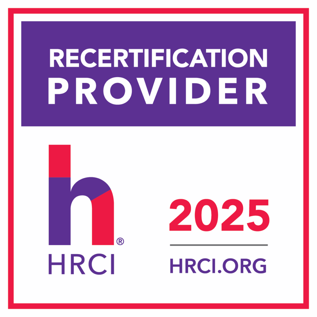 HRCI: This program has been approved for 1.0 (HR (General)) recertification credit hours toward aPHR™, aPHRi™, PHR®, PHRca®, SPHR®, GPHR®, PHRi™ and SPHRi™ recertification through the HR Certification Institute.